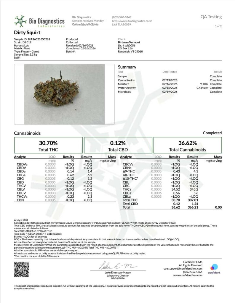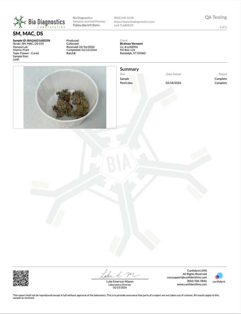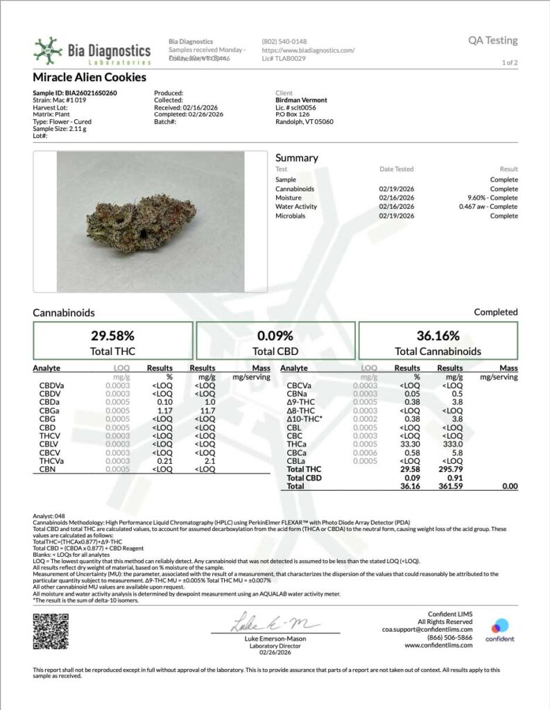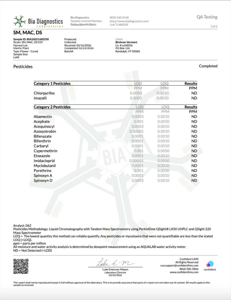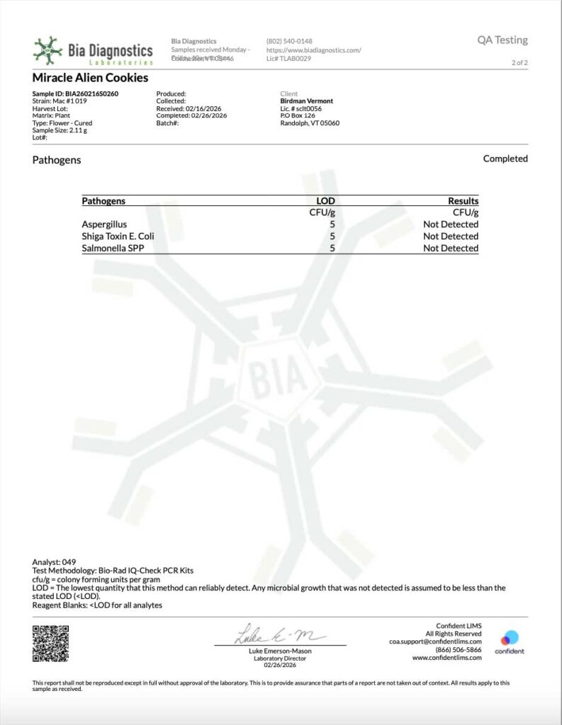 HARVEST LOT #011 Certificates of Analysis